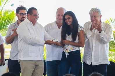En este evento, acompañaron al presidente de la república, el secretario de Desarrollo Agrario, Territorial y Urbano (SEDATU), Román Meyer Falcón; la secretaria de Bienestar, María Luisa Albores González, senadores y beneficiarios de los diferentes programas.
