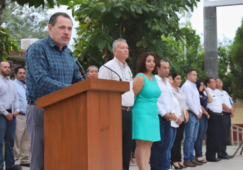 El doctor Jaime Cuevas Tello, Presidente Municipal de Bahía de Banderas, acompañado por la Supervisora de la Zona 10 de Escuelas Secundarias Técnicas, Angélica Fletes, autoridades educativas y regidores, inauguró el nuevo Ciclo Escolar, en el que se incorporan más de 35 mil alumnos a las aulas de nuestro Municipio.