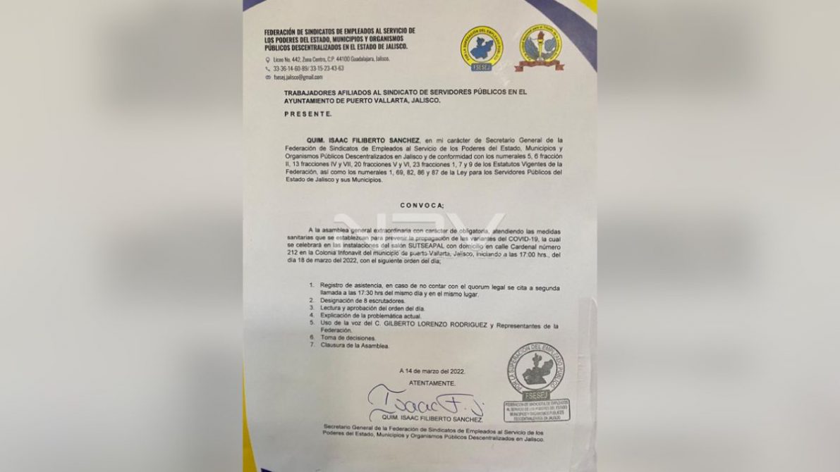 Ante los actos de corrupción, abusos de poder como servidor público y la complicidad de administraciones pasadas para ejercer el liderazgo como Secretario General del Sindicato de Servidores Públicos del H. Ayuntamiento de Puerto Vallarta, Jalisco, Gilberto Lorenzo Rodríguez, presentará su renuncia al pleno de la asamblea de sindicalizados, en una sesión extraordinaria, convocada para este 18 de marzo del 2022, en las instalaciones del SutSeapal, según la convocatoria que ha hecho circular y que tienen registrada con carácter de obligatoria.