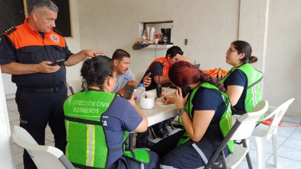 Al término de este ejercicio, autoridades de los tres niveles de gobierno que formaron parte de la organización y desarrollo de este Simulacro Nacional por Alerta de Tsunami se reunieron en el puesto de mando instalado en la sede en desuso de la Secretaría de la Defensa Nacional en la colonia Mariano Otero.