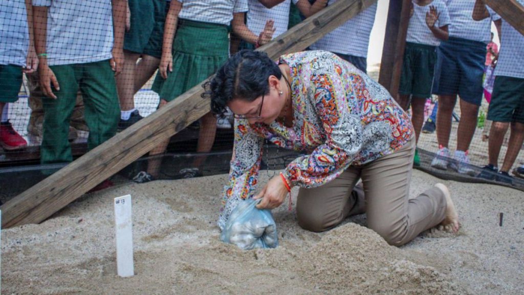 Luego del acto protocolario, la regidora Sara Mosqueda Torres, en representación del Profe Michel, llevó a cabo de manera simbólica la siembra de uno de estos nidos en el vivero de la playa El Holi, donde posteriormente eclosionarán para que más tarde se realice su liberación.