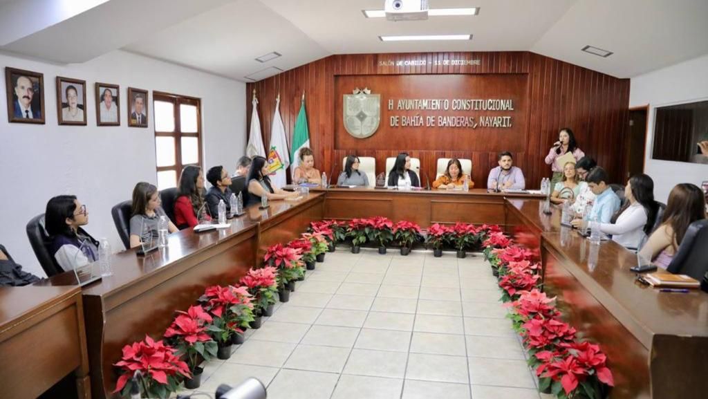 Bahía de Banderas, Nay., a 8 de diciembre de 2022.- En la sala de Cabildo de la presidencia en Valle de Banderas, once jóvenes tomaron protesta conformando el Cabildo Juvenil 2022, ante la presienta municipal Mirtha Villalvazo Amaya y el cuerpo de regidores, luego de haber participado en la convocatoria para ser parte de este cabildo, presentando propuestas basadas en políticas públicas con base a las diferentes comisiones edilicias.