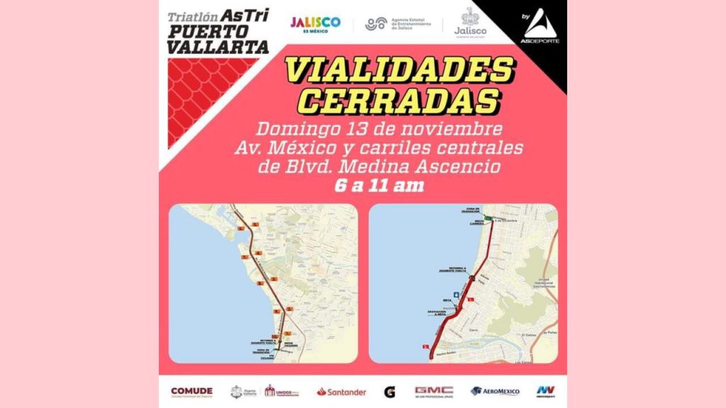 Para el desarrollo de esta competencia, habrá cierre vial de la avenida México y los carriles centrales de la avenida Francisco Medina Ascencio, de 6 a 11 de la mañana, por lo que se solicita a la ciudadanía tomar las precauciones necesarias y utilizar rutas alternas para su traslado. A lo largo de la ruta, autoridades municipales se encontrarán brindando el apoyo necesario.