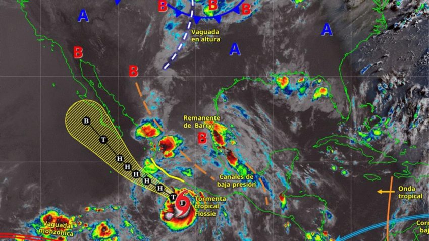 La tormenta tropical Flossie se mantiene activa frente a las costas del Pacífico y durante las próximas horas dejará lluvias intensas en regiones de Jalisco y Nayarit, así como en Colima, Michoacán y Oaxaca, además de precipitaciones torrenciales en Guerrero, informó el Servicio Meteorológico Nacional.