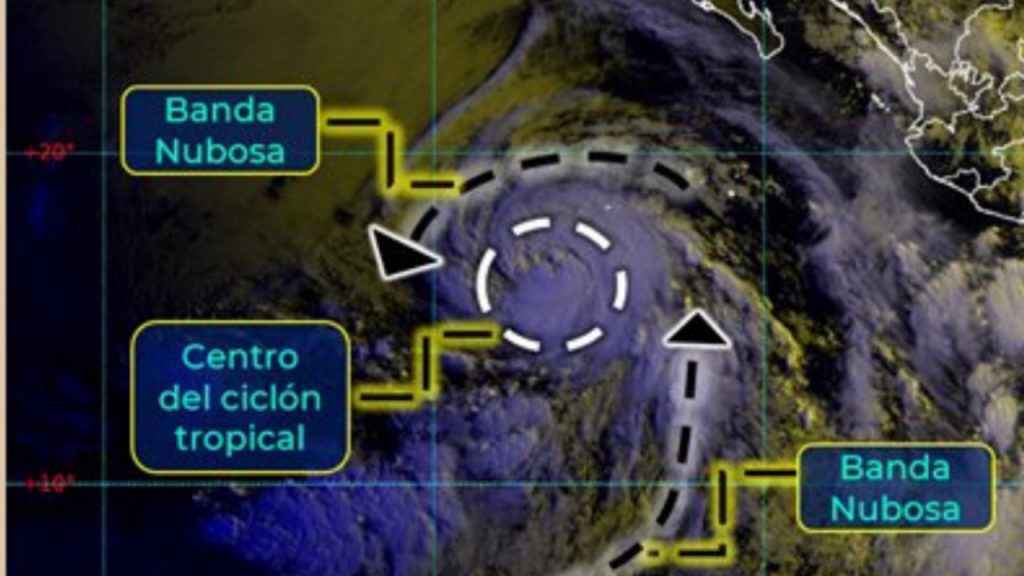 El centro del huracán se ubica a 970 kilómetros al suroeste de Cabo San Lucas, en Baja California Sur, asimismo, presenta vientos sostenidos de 150 kilómetros por hora y rachas de 185 kilómetros por hora, así como desplazamientos hacia el noroeste a 19 kilómetros por hora.