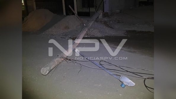 Camión de carga que transportaba frutas y verduras derribó unos cables y tumbó un poste de la CFE, donde causó daños y dejó sin energía eléctrica un antro, además de varios domicilios, luego el conductor intentó evadir su responsabilidad retirándose del lugar, pero fue encontrado cuadras adelante en conocida bodega de frutería, donde fue asegurado por las autoridades.