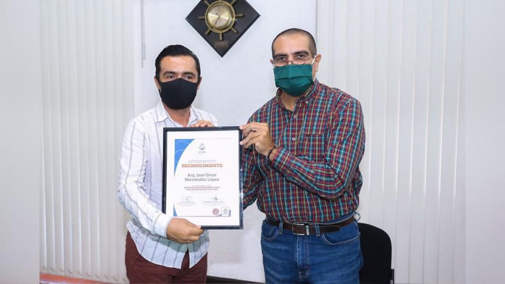 El alcalde Arturo Dávalos realizó la entrega de los reconocimientos a los presidentes de los diferentes colegios de profesionistas, quienes formaron parte de los cursos ‘Actualización de Directores Responsables de Obra 2019’ y ‘Actualización Profesional para D.R.O. de Protección Civil 2020’, con los que se garantiza la preparación profesional requerida para poder acreditarse ante la COPESUM.