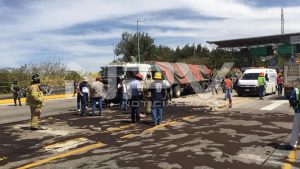 Aparatosa volcadura de un camión de pasajeros en carretera a Huajicori