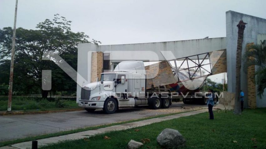 Los hechos fueron reportados la mañana de este martes, en el sentido de que un tráiler había ingresado al fraccionamiento, pero se había llevado parte de la fachada del ingreso.