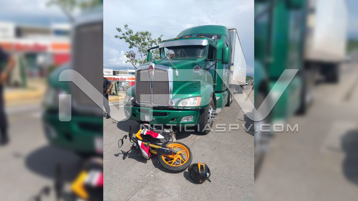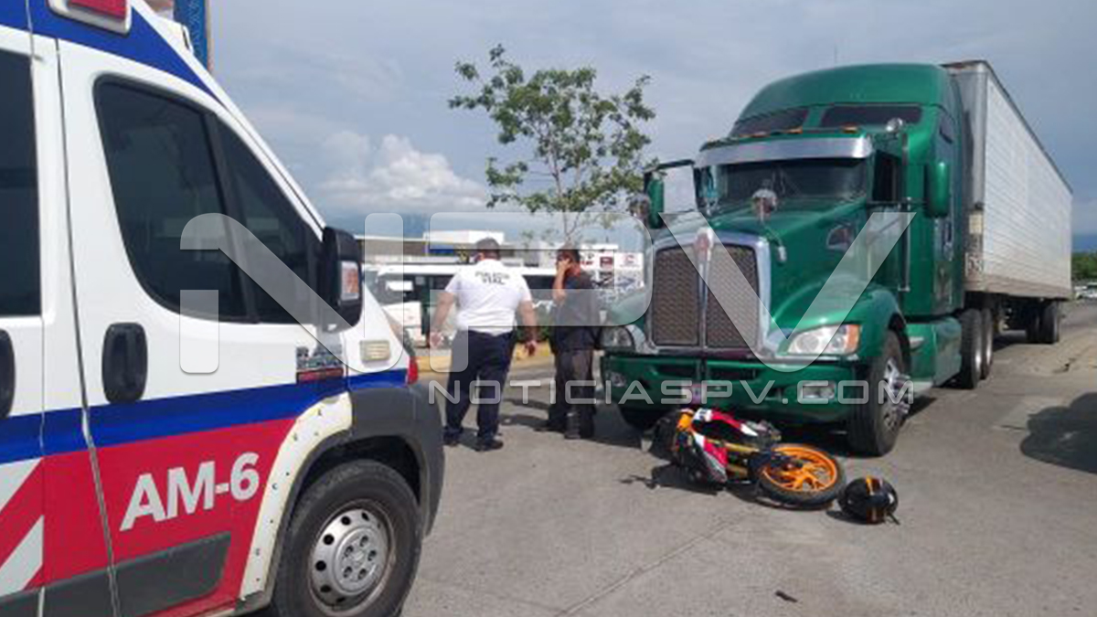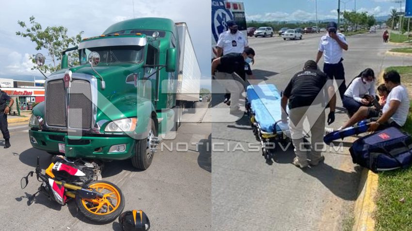 Paramédicos del cuerpo de bomberos de Bahía de Banderas, auxiliaron a joven motociclista que iba acompañado de una niña sobre el boulevard Rivera Nayarit, a la altura del semáforo de Plaza Lago Real, luego de que fueron atropellados por un tráiler.