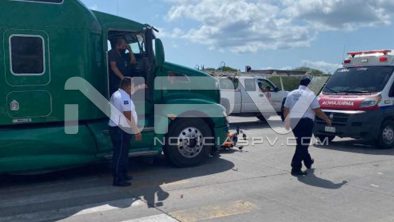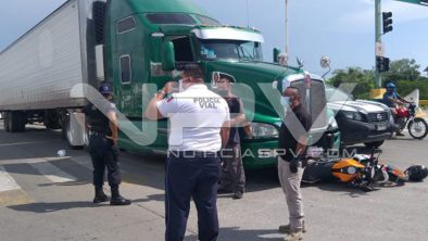 Las autoridades municipales llegaron el lugar de los hechos junto con los cuerpos de auxilio, detectando que la moto había quedado en la parte de abajo del tráiler, el cual los había arrastrado aproximadamente 2 metros, resultando lesionado el masculino que conducía la moto, en tanto que la niña que lo acompañaba, únicamente resultó con escoriaciones.