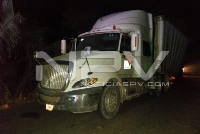 Tráiler cargado de sandia se partió en dos al estrellarse contra un árbol por evitar chocar contra un auto compacto, al ir circulando por la carretera de El Colomo, en Bahía de Banderas.