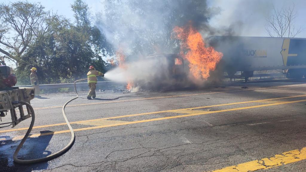 El conductor mencionó que se encontraba viajando desde Baja California con destino hacia Oaxaca, cuando al transitar por el kilómetro 109 se percató de que comenzó a salir humo de la parte frontal del trailer, por lo cual, procedió a estacionarse y salir del trailer, mismo que rápidamente comenzó a incendiarse.