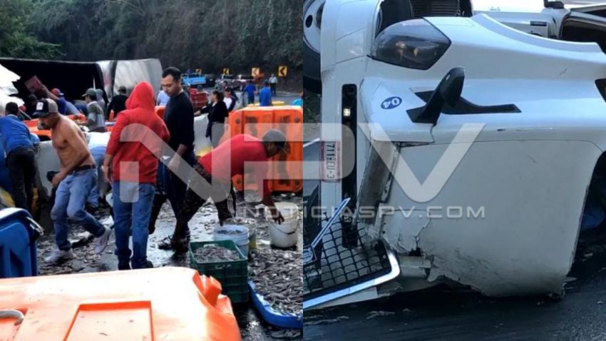 Nayarit.- Fatal tragedia se registró en la autopista Tepic-Mazatlán, en donde un trailer cargado de camarón se volcó y a causa de ello el conductor quedó prensado y murió a los pocos minutos.