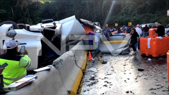 Las autoridades estatales de Nayarit, dieron a conocer que fue durante la mañana de este miércoles, aproximadamente a las 8:40 horas, en el que se reporta una volcadura de un tracto camión articulado en el kilómetro 21+000 de la autopista Tepic-Mazatlán, como referencia antes de llegar a la curva de El Caracol.