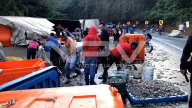 Nayarit.- Fatal tragedia se registró en la autopista Tepic-Mazatlán, en donde un trailer cargado de camarón se volcó y a causa de ello el conductor quedó prensado y murió a los pocos minutos.