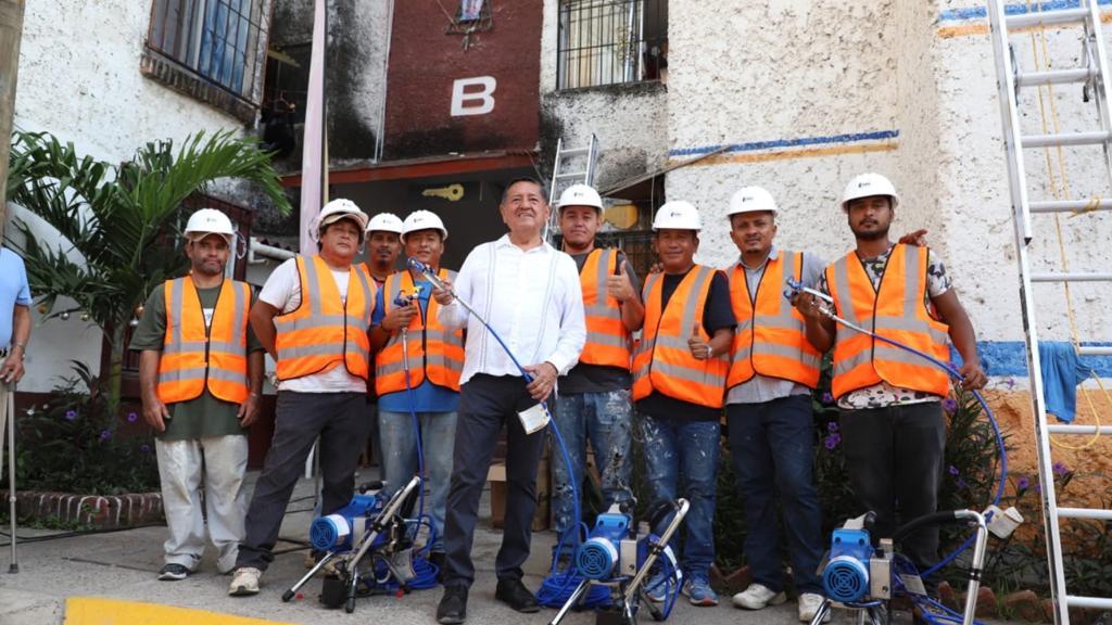 Indicó que los colores fueron elegidos por los propios vecinos del fraccionamiento, por lo que desde este viernes el equipo de trabajadores inició con la aplicación de pintura en los primeros cuatro de los 65 edificios que pronto se verán transformados para beneficio de sus habitantes.