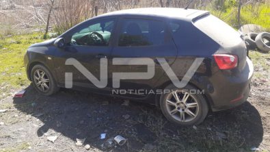 Teniendo el vehículo en color negro, de la marca SEAT, submarca Ibiza, por elementos de la Policía Municipal, sin tripulantes en la calle 5 de Mayo entre calle Paz de la colonia Nueva Galicia de la localidad anteriormente mencionada.