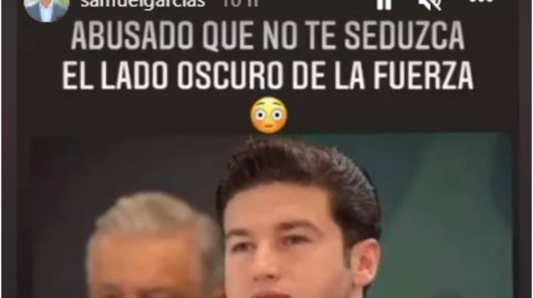 El gobernador de Nuevo León, Samuel García, publicó un meme en Instagram en el que relaciona al presidente López Obrador con el «lado oscuro de la fuerza».