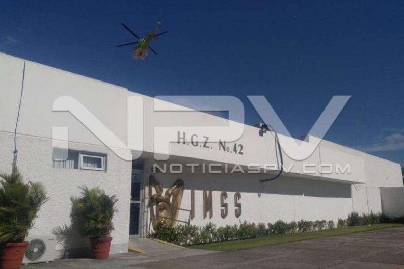 Mientras tanto personal de Seguridad de la clínica 42 procedió a evacuar la explanada y tomaron sus posiciones, quedando en espera de la llegada del helicóptero, el cual arribó exactamente a las 12 con 5 de la tarde de este miércoles.