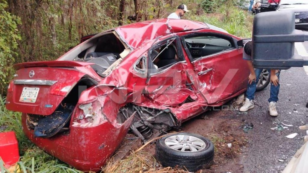 Las víctimas se encontraban a bordo de un automóvil marca Nissan, color rojo, con placas del estado de Nayarit, el cual terminó completamente destrozado y fuera de la superficie de rodamiento, tras ser impactado lateralmente por un camión de carga que permaneció detenido sobre el carril correspondiente.