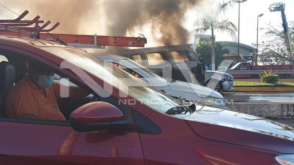 Una camioneta que era conducida en exceso de velocidad, chocó primero con la barra de contención *Literalmente se regresó en sentido contrario tras el impacto y chocó con los otros vehículos, para luego comenzar a quemarse