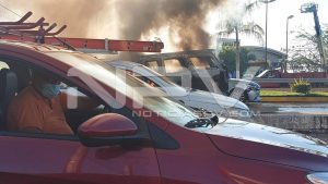 Voraz incendio se le salió de control y quemó 3 vehículos rumbo a El Colomo