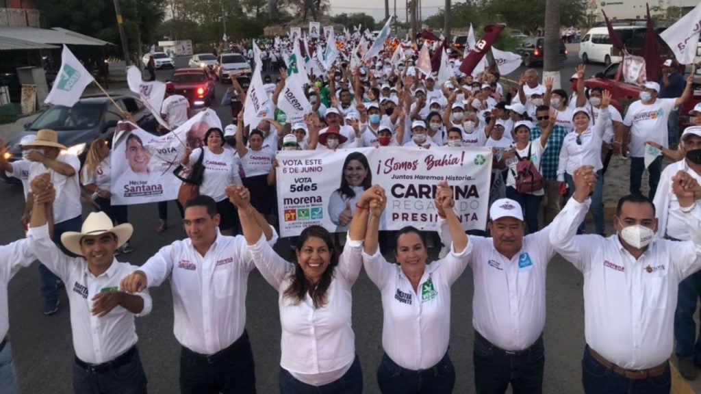 Al lado de la Maestra Carmina Regalado y haciendo un solo equipo, los también candidatos a diputados locales por los distritos XVII y XVIII (doctor Alejandro Regalado y Héctor Santana, respectivamente), así como los candidatos a regidores, Maestra Chiquete, Rafita Cervantes, el también Maestro Antonio Plácito, así como el licenciado Octavio Valencia Jiménez.