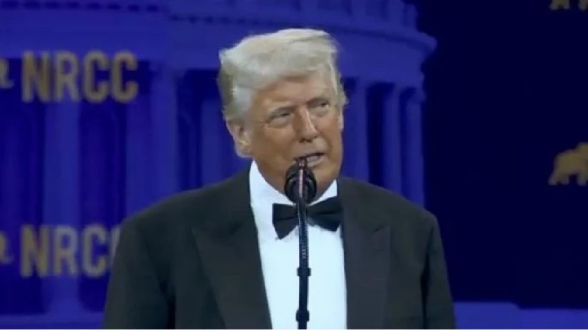 “Se están muriendo por llegar a un acuerdo”, se mofa el presidente de EU durante un discurso en la Cena del Comité Nacional Republicano del Congreso en Washington.