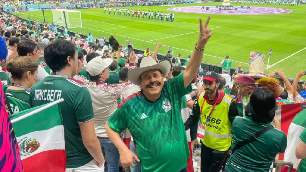 A través de su cuenta de Twitter, el empresario y también aspirante para ser candidato de la autollamada “Cuarta Transformación” (4T) para la gubernatura del estado de Coahuila, presumió fotos donde se le ve muy sonriente con su característico sombrero y su jersey del Tri en las tribunas.