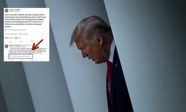 en las elecciones presidenciales que se realizarán en noviembre, después de que la red social etiquetó por primera vez dos de sus tuits como engañosos, un hito para la red social, acusada de ser laxa en sus normas con el mandatario.
