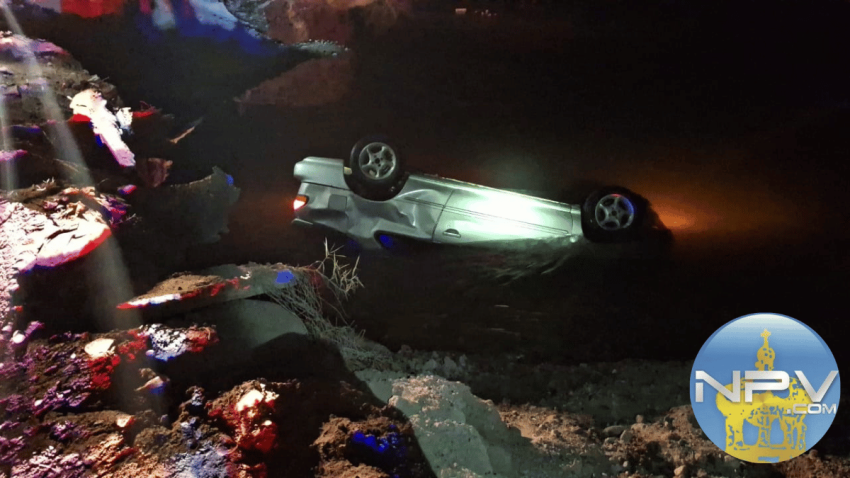Un vehículo Nissan gris, con placas del estado de Jalisco, circulaba por la brecha cuando su conductor, identificado como Luis Gerardo, de 24 años, perdió el control y terminó volcado dentro del cauce.