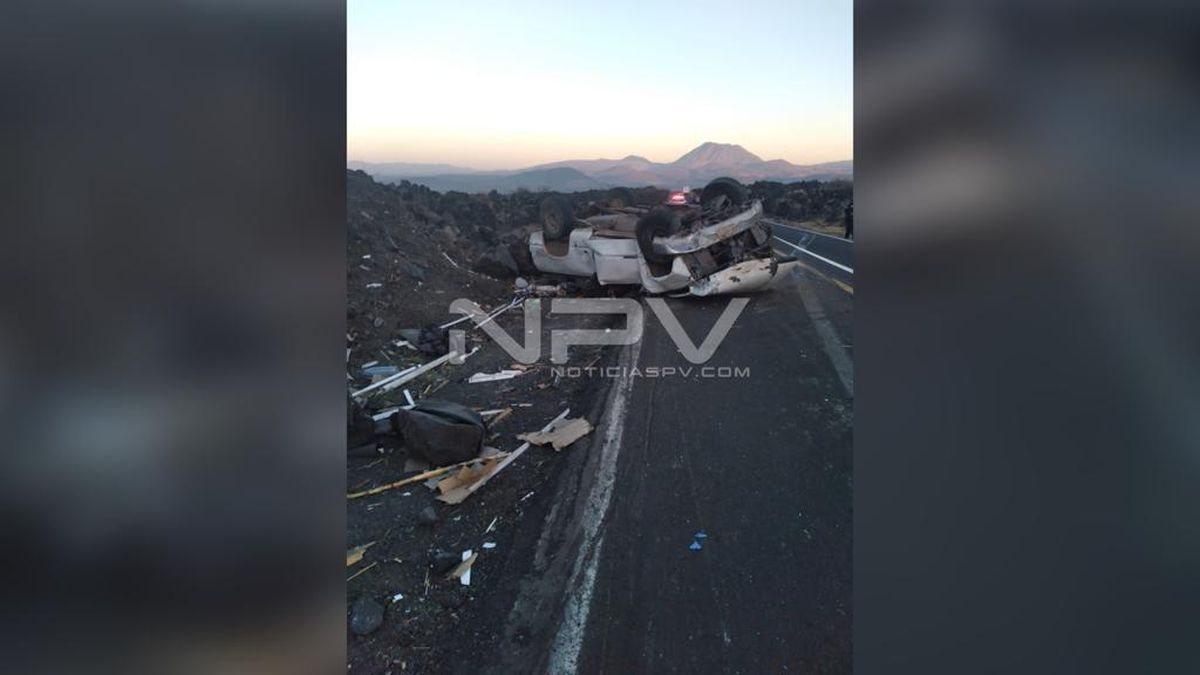 Aparatosa volcadura de un camión de pasajeros en carretera a Huajicori