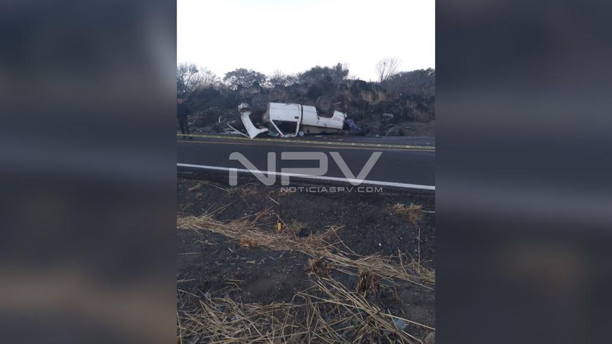 Aparatosa volcadura de un camión de pasajeros en carretera a Huajicori