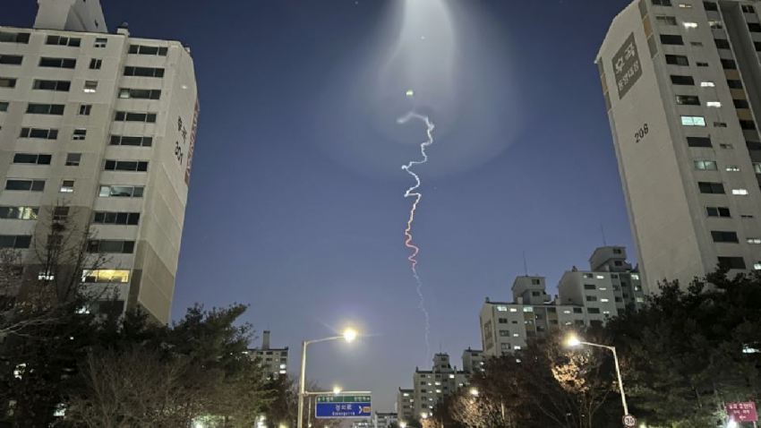 Una espiral de vapor en tonos de blanco a rojo se vio serpenteando detrás de blancas luces brillantes en partes del cielo de Corea del Sur la tarde del viernes. Redes sociales y sitios de internet surcoreanos se saturaron de mensajes de ciudadanos que dijeron ver un objeto volando, una estela de vapor del color del arcoíris u otras luces misteriosas. Algunos publicaron fotos y videos.