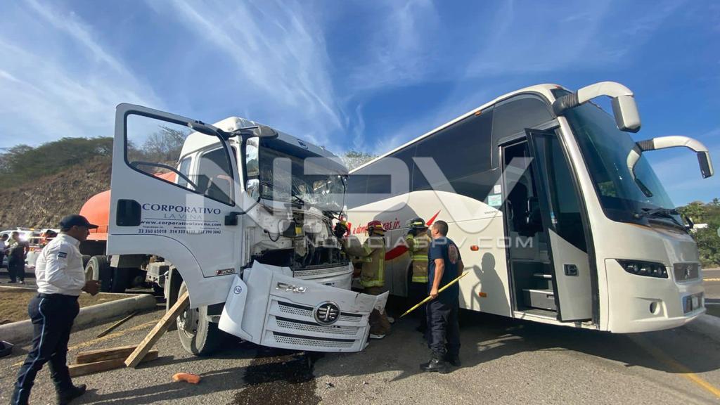 Aparatoso accidentes se registró sobre la carretera que lleva de La Cruz de Huanacaxtle a La Manzanilla, en donde se vio involucrada una pipa y un autobús de turismo, resultando algunas personas lesionadas, informaron las autoridades municipales de Bahía de Banderas.