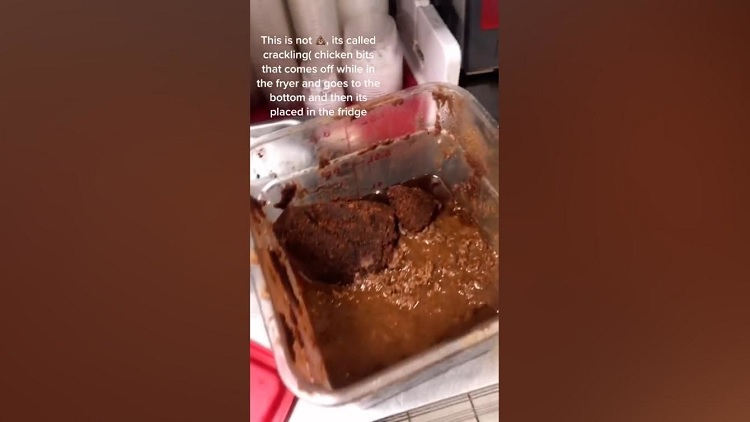 La base de la salsa es una pasta marrón hecha a partir de los restos de pollo que quedan en la freidora tras cocinar la carne, según se lee en el texto que acompaña al vídeo. A esta masa se le añade agua y un polvo blanco sin especificar, que podrían ser especias.