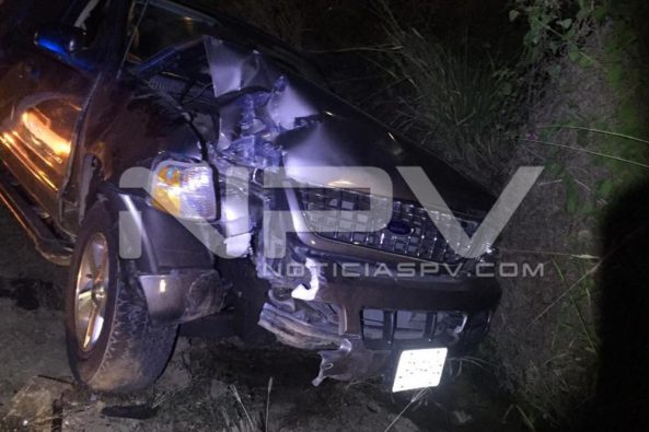 Aparatoso accidente sucedió en Bahía de Banderas sobre el camino que lleva al fraccionamiento La Misión, en el poblado de San Vicente, en donde una camioneta fue dejada abandonada y completamente destrozada del frente.