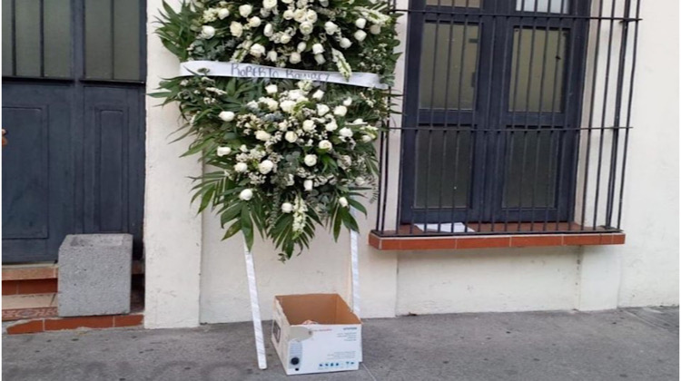 Una corona y cabeza de vaca son colocadas a las afueras de la Comisión de Derechos Humanos de Colima