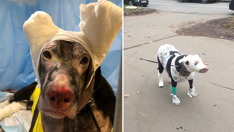 La perra sufrió terribles quemaduras en la cara, las orejas, el vientre y las patas, y se espera que dé a luz a varios cachorros a finales de mes. Según un veterinario, todos los cachorros se están desarrollando bien.