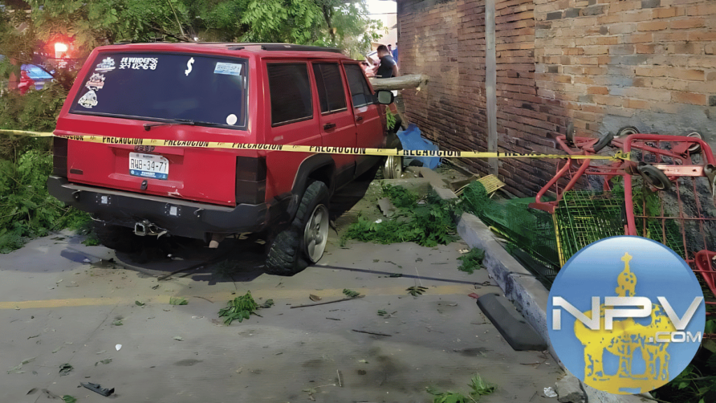 El percance se registró alrededor de las 2:00 p.m. sobre el bulevar Adolfo López Mateos, a la altura del supermercado. Según los primeros informes, una camioneta Jeep Cherokee de color rojo, con placas del estado de Nayarit, circulaba a exceso de velocidad y, al llegar al cruce con la calle 5 de Mayo, el conductor perdió el control del vehículo.