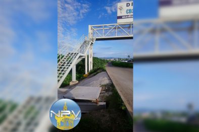 Hace más o menos dos meses de pronto la empresa publicitaria empezó a construir la escalera de uno de los lados del puente y se dijo entonces que ya pronto este puente estaría en servicio, pero no fue así, estas ya se están oxidando y del otro lado que da al centro comercial no se ha visto que la obra continúe.