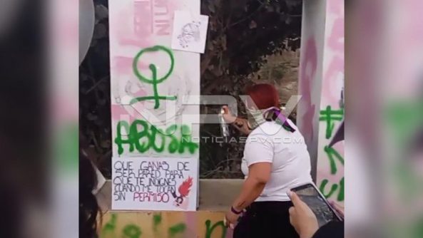 En el marco del día internacional de las mujeres, chicas grafitearon en Las Letras de la Riviera Nayarit.