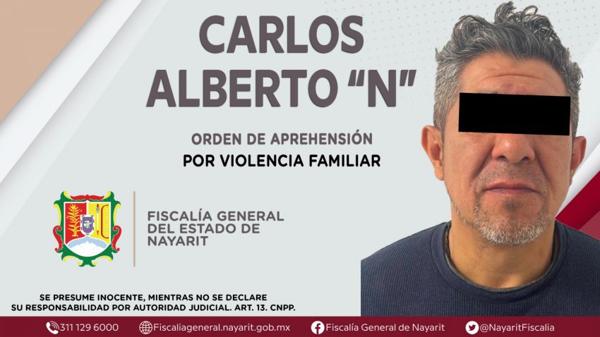 Comunicado.- Elementos de la Agencia de Investigación Criminal de Nayarit ejecutaron una orden de aprehensión en el municipio de Bahía de Banderas contra Carlos Alberto “N”, por su presunta participación en hechos que según apreciación de la ley encuadran el delito de violencia familiar, cometido en agravio de una persona de sexo femenino de identidad reservada.