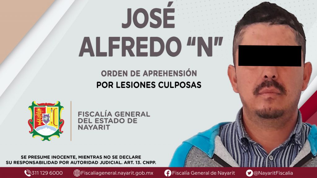 Comunicado.- Elementos de la Agencia de Investigación Criminal de Nayarit ejecutaron una orden de aprehensión en el municipio de Compostela contra José Alfredo “N”, por su presunta participación en hechos que según apreciación de la ley encuadran el delito de lesiones culposas, cometido en agravio de una persona de sexo masculino de identidad reservada.