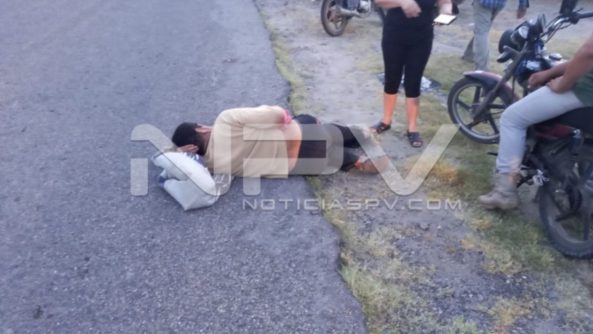 BADEBA.- Las autoridades municipales de Bahía de Banderas, tomaron conocimiento acerca de un percance vial que se registró sobre la carretera a El Colomo, en donde un motociclista se estrelló contra una vaca, resultando de este modo lesionada una persona, misma que fue trasladada a recibir atención médica a un hospital.