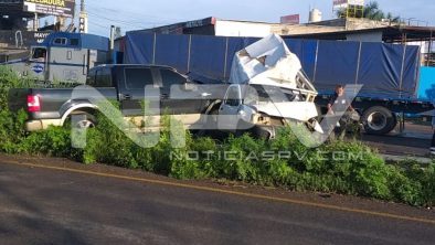 Esta camioneta se impactó por alcance, contra una camioneta Nissan, tipo NP300, resultando algunas personas prensadas, por lo que de inmediato solicitaron la presencia d los cuerpos de auxilio en el lugar, registrado como kilómetro 00+800 del libramiento.