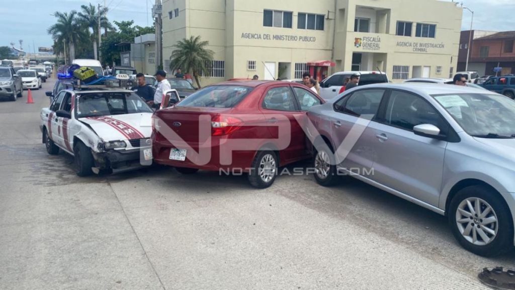 Aparatosa carambola se registró sobre el boulevard Riviera Nayarit, a la altura de la Fiscalía del Estado de Nayarit en Jarretaderas, en donde se vieron involucrados tres vehículos que resultaron con daños considerables.
