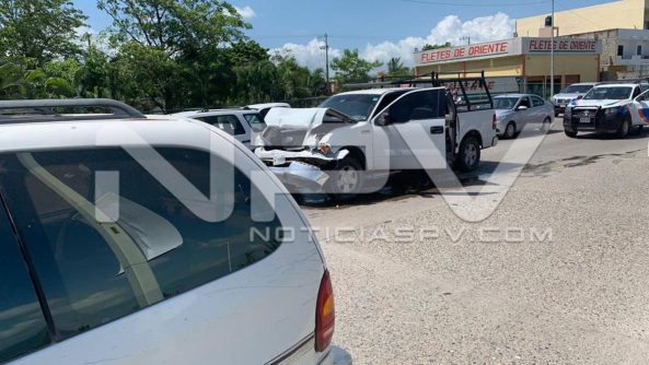 Fuerte accidente por alcance se registró la tarde de este martes sobre la avenida Francisco Medina Ascencio a la altura de la curva del crucero de Las Juntas, en donde se vieron involucrados dos camionetas, resultando lesionado uno de los conductores.