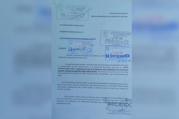 Pero, no solamente a esta dirección se han acercado los vecinos de este coto, también al presidente municipal, Jaime Cuevas, le hicieron llegar un oficio de queja y solicitud, al área administrativa del IMSS, al delegado de Valle Dorado, a la dirección de Padrón y Licencias en el área de inspección, verificación y vigilancia, a tránsito municipal y a dos regidoras, una de ellas la de esta demarcación de Mezcales.